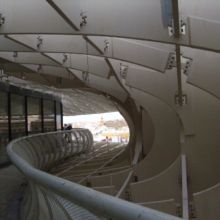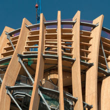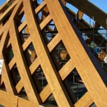 Brettschichtholzkonstruktionen ermöglichen hohe Spannweiten. Sind diese im Außenbereich notwendig, so wird oft zur Holzart Lärche gegriffen. Lärchenkernholz kann dort nach DIN 68800-1/-3 ohne vorbeugenden chemischen Holzschutz verwendet werden. Die Zulassung zur Einklebung von Stahlstäben bietet dem Planer neue Variationen. Verbindungen mit eingeklebten Stahlstäben können jetzt auch in Lärchebrettschichtholz bei Brücken oder anderen tragenden Bauteilen im Außenbereich eingesetzt werden.