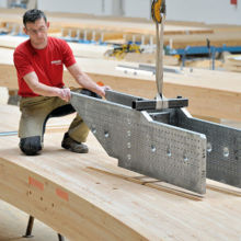 - Herstellung von Verbundträgern aus gleichen oder unterschiedlichen BSH-Querschnitten, wenn der notwendige Pressdruck für herkömmlicher Klebstoffe nicht erzeugt werden kann.